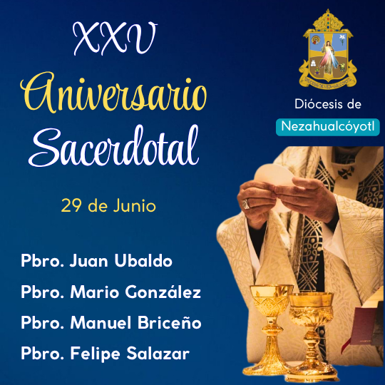 El pasado 29 de junio de 2025, solemnidad de San Pedro y San Pablo, cuatro sacerdotes de nuestra diócesis celebraron 25 años de ministerio sacerdotal: Pbro. Felipe Salazar C...